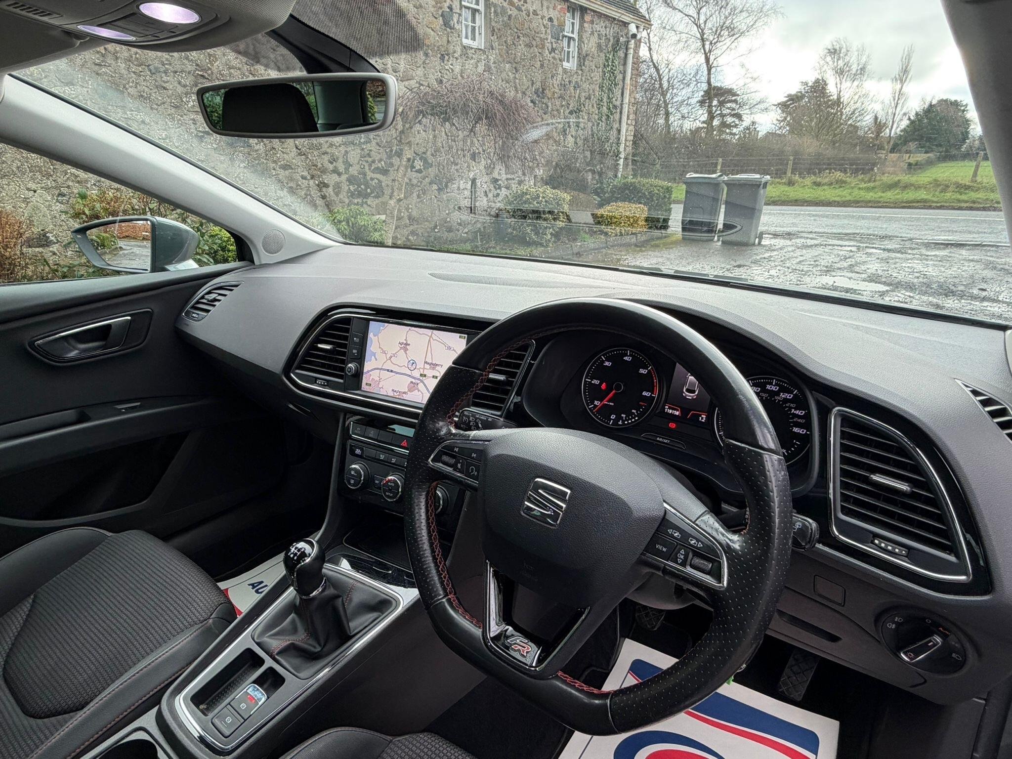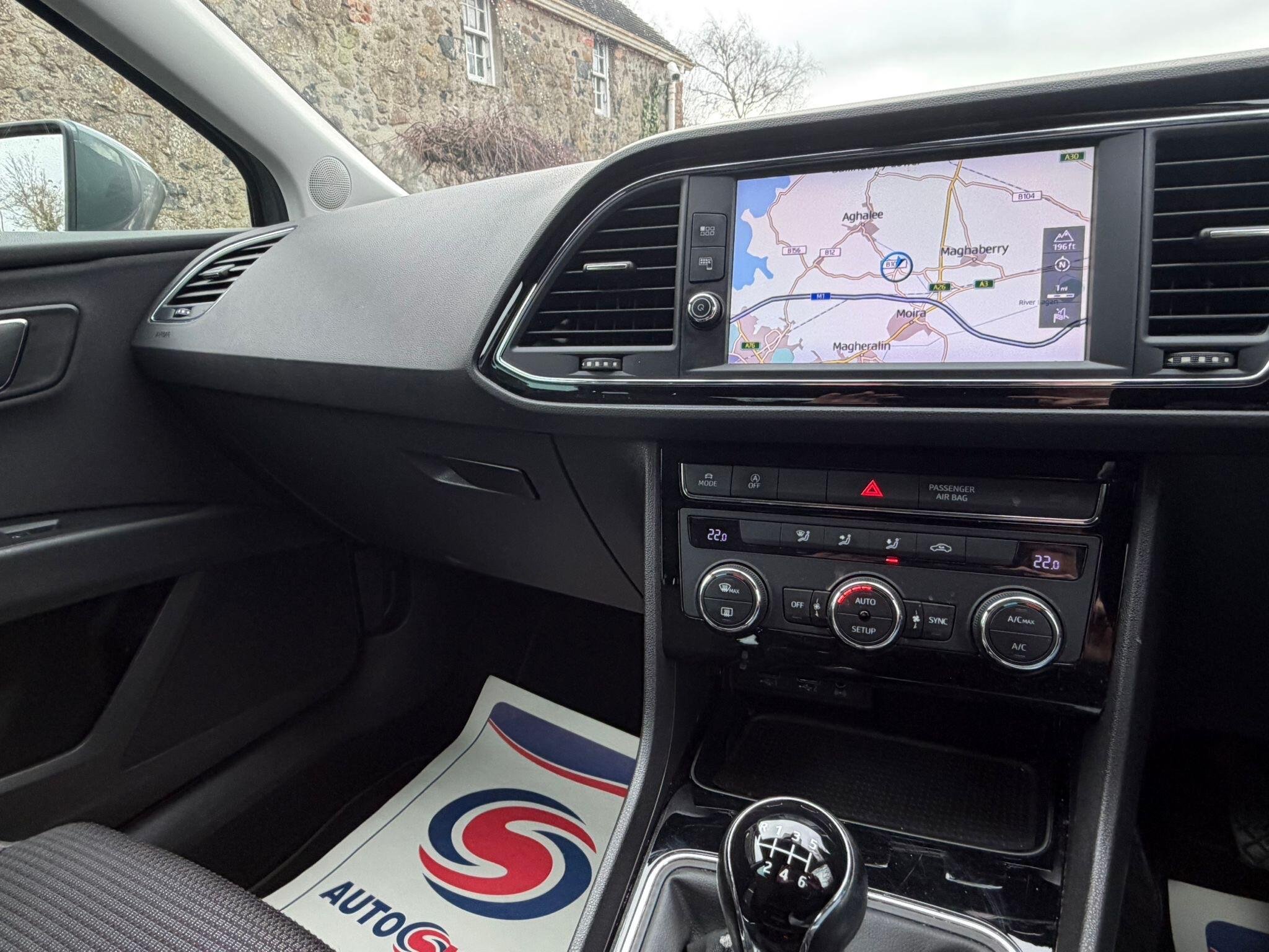 This 2018 SEAT Leon TDI FR Technology offers an exceptional blend of performance and efficiency, boasting a remarkable 61 mpg fuel economy. This Euro 6 compliant 2.0 litre diesel engine is paired with the FR Technology trim, providing a dynamic driving experience. Inside, you'll find the Media System Plus, complete with Bluetooth connectivity and SEAT Full Link Smartphone Integration, supporting Mirror Link, Apple CarPlay, and Google Android Auto. Navigating is made simple with the integrated Navigation System, also featuring Bluetooth. Comfort is assured with Dual Zone Climate Control, and parking is made easier thanks to the Rear Parking Sensors. This SEAT Leon stands out with its impressive acceleration, reaching 0 to 62 mph in just 7.8 seconds, demonstrating its sporty capabilities. The large boot space offers practicality for everyday needs and longer journeys. Furthermore, its low insurance group rating indicates that running costs are kept to a minimum, making it a cost effective choice compared to similar vehicles. -